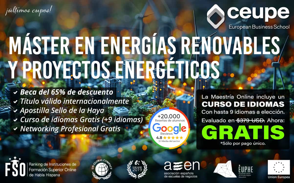 Maestría en Energías Renovables y Proyectos Energéticos. 100% Online con Titulación Europea válida a nivel Internacional + Beca del 65% de descuento